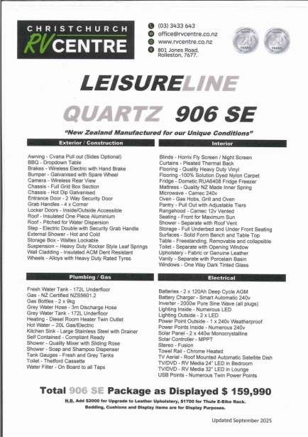 - Christchurch RV Centre is the only factory accredited Leisure Line Dealer in the South Island and the largest dealer in New Zealand.